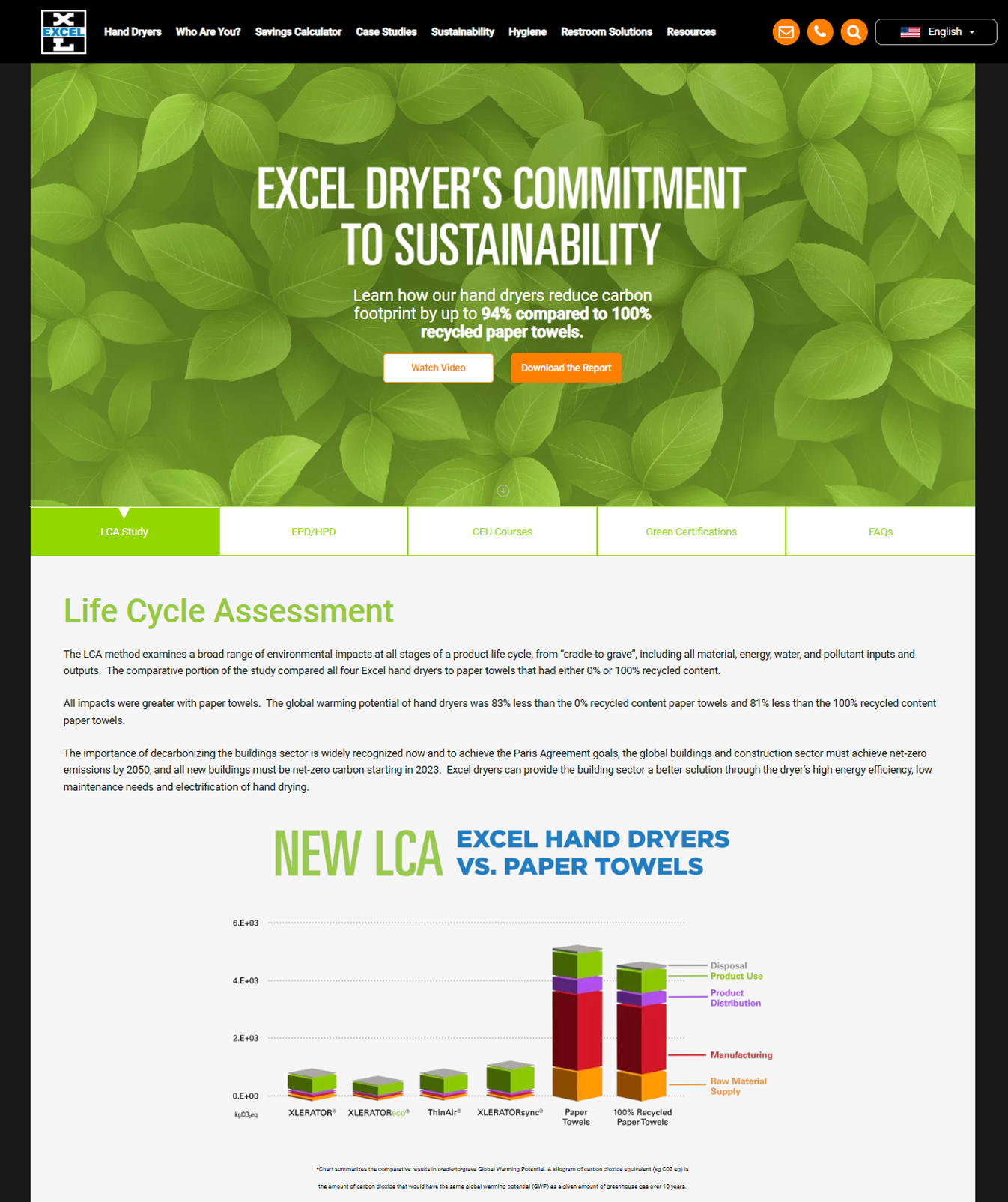 All marketing content routed to Excel Dryer's website and LCA landing page where more information could be accessed to educate clients and customers. I was responsible for creating the overall design while an external vender assembled and coded the pages under my direction.